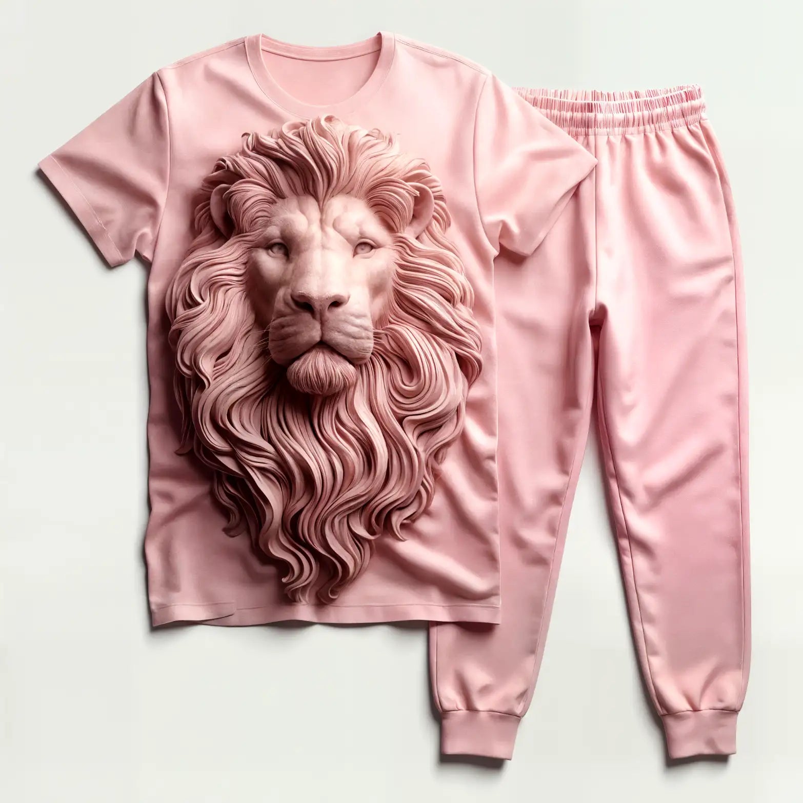 Elevate your casual wardrobe with The King's Pride Lion Pink Tee paired with Grey Jogger Tracksuit. This ensemble combines a vibrant pink tee featuring a distinctive lion emblem with comfortable grey joggers designed for both style and ease. Ideal for relaxed outings or active days, this set offers a balanced blend of bold design and practical comfort.